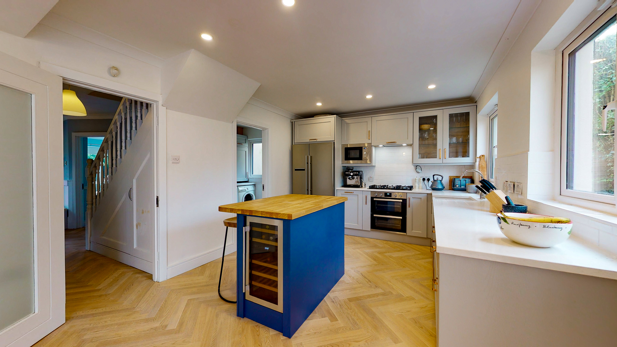 We also fitted a bespoke radiator cover with 2 pull out drawers on top and wall panelling in the hall, stairs and landing. We loved creating this new kitchen design so let Modern Form Kitchens create your new designed kitchen with as much love as we did this project. Contact Martin today.