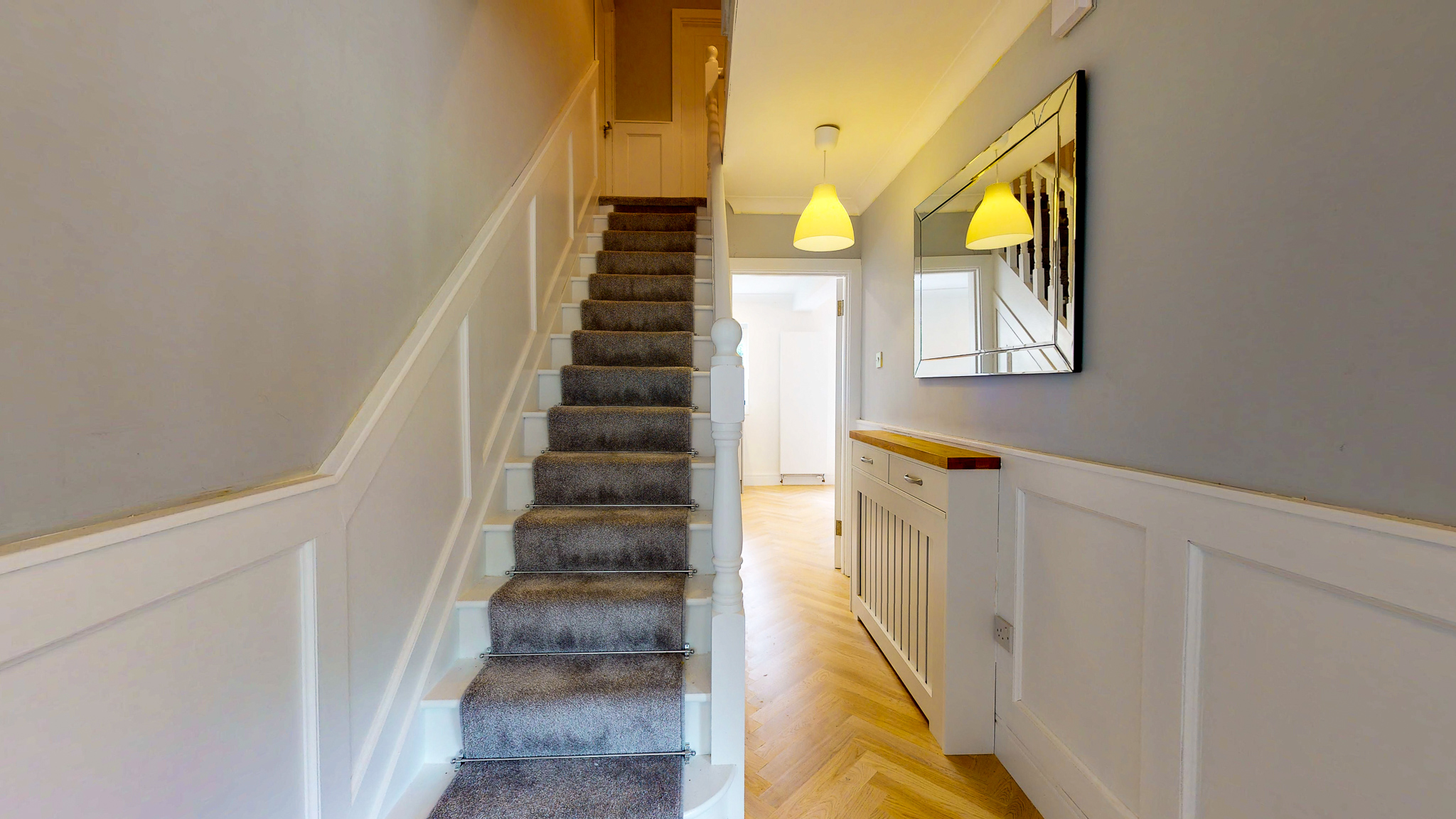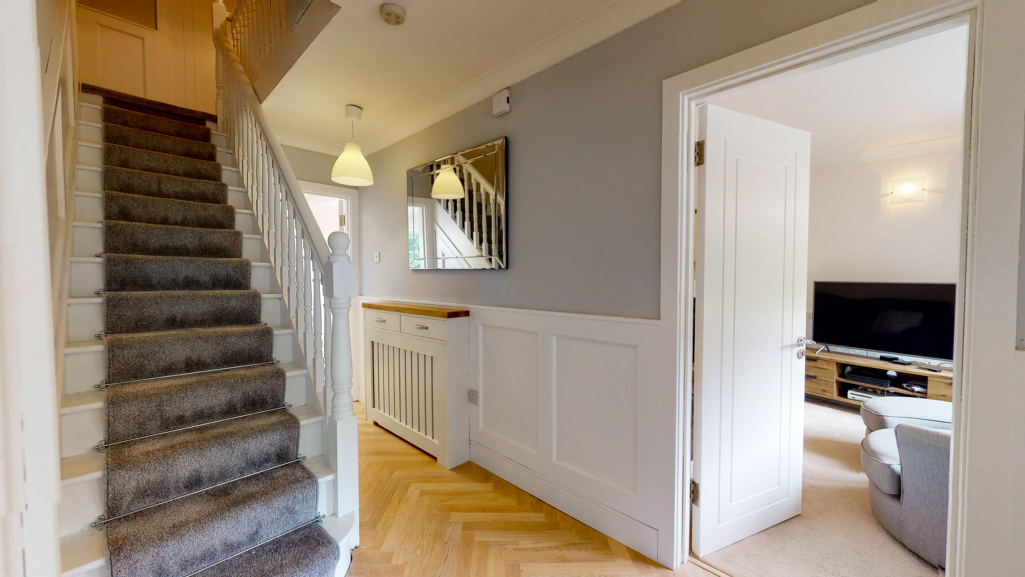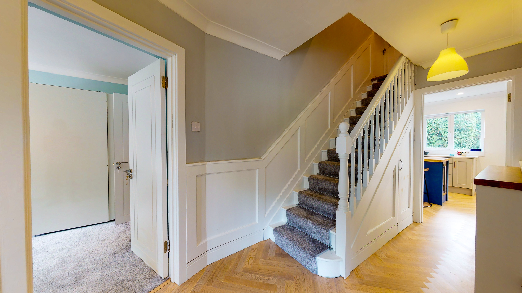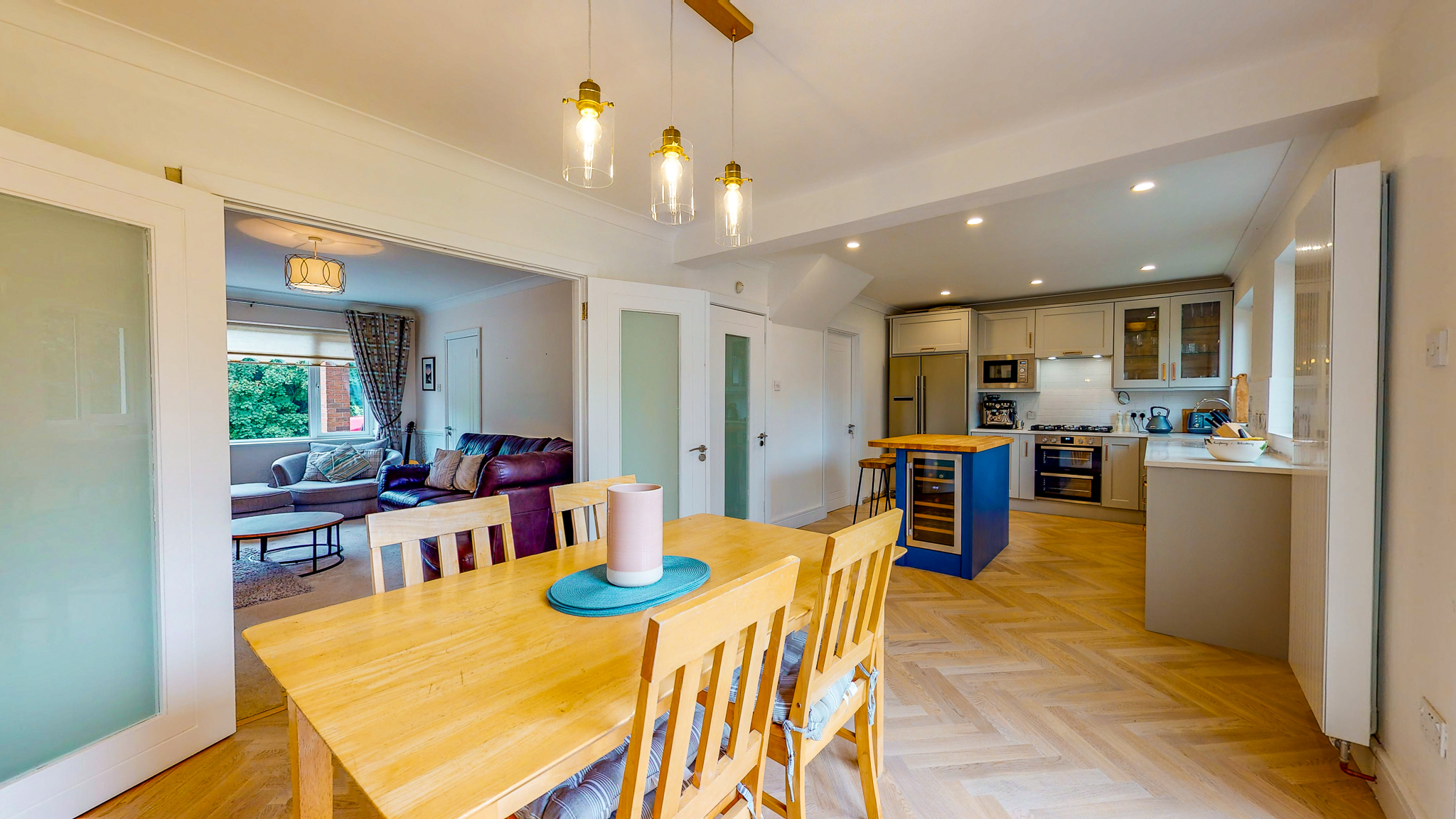 The floors are herring bone engineered oak from Floor Design  with 14 internal doors, architrave and skirtings from Doors Ireland