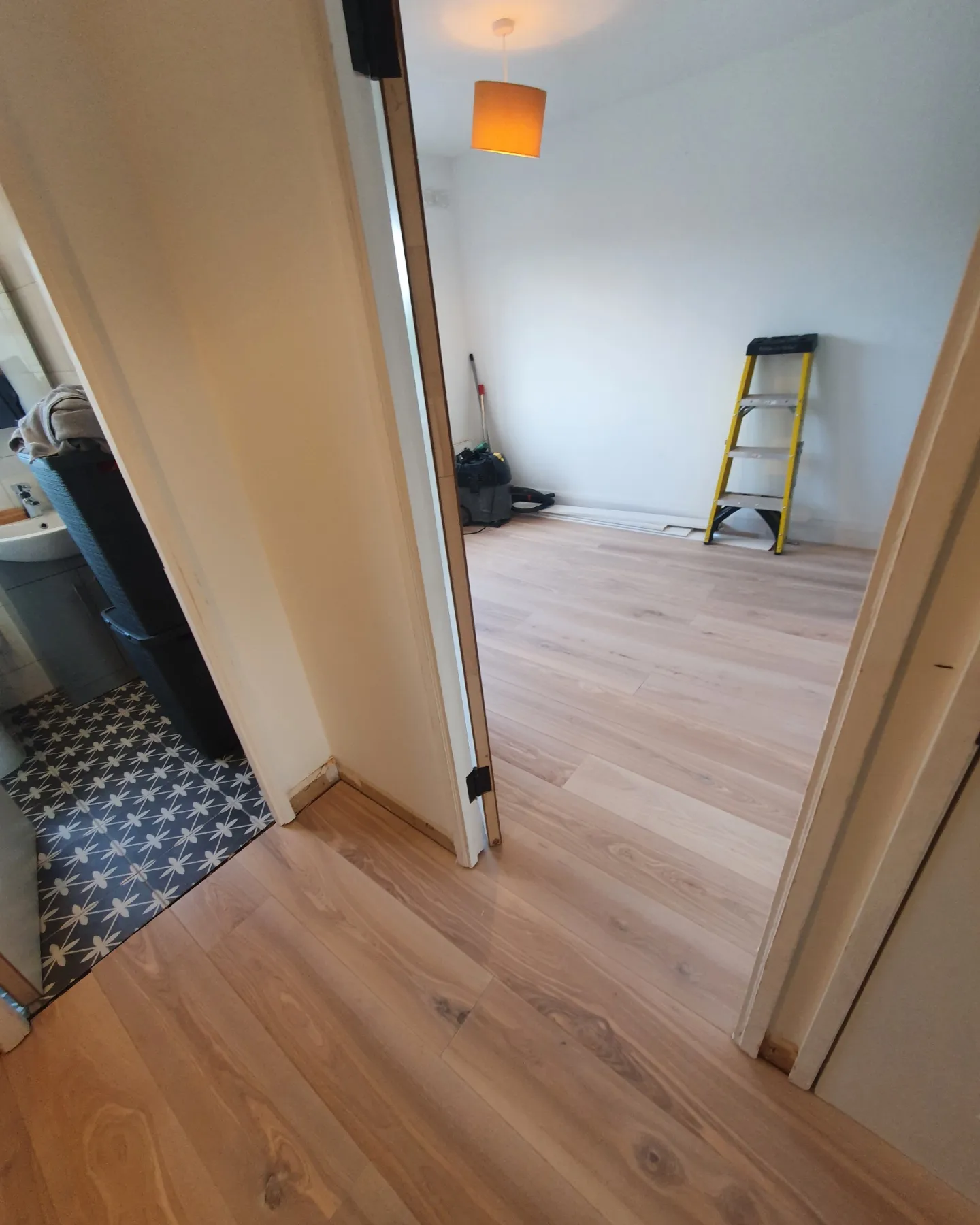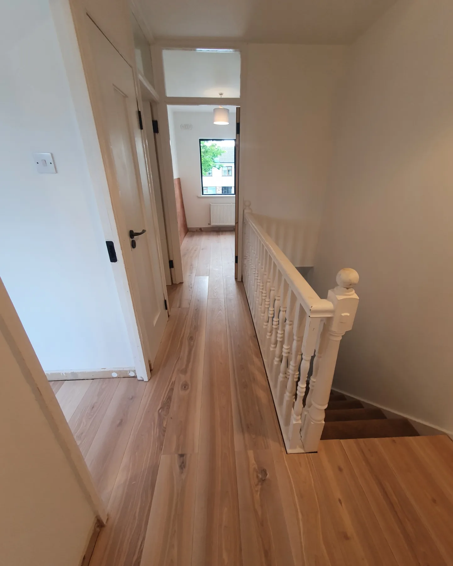 We also supplied some wardrobe units, under stairs units and the skirting that was to be put on after these photos were taken before the room was filled up with furniture. We glued this engineered floor down so there is no need for joints between rooms so the floor runs continuously throughout the whole upstairs of the house.