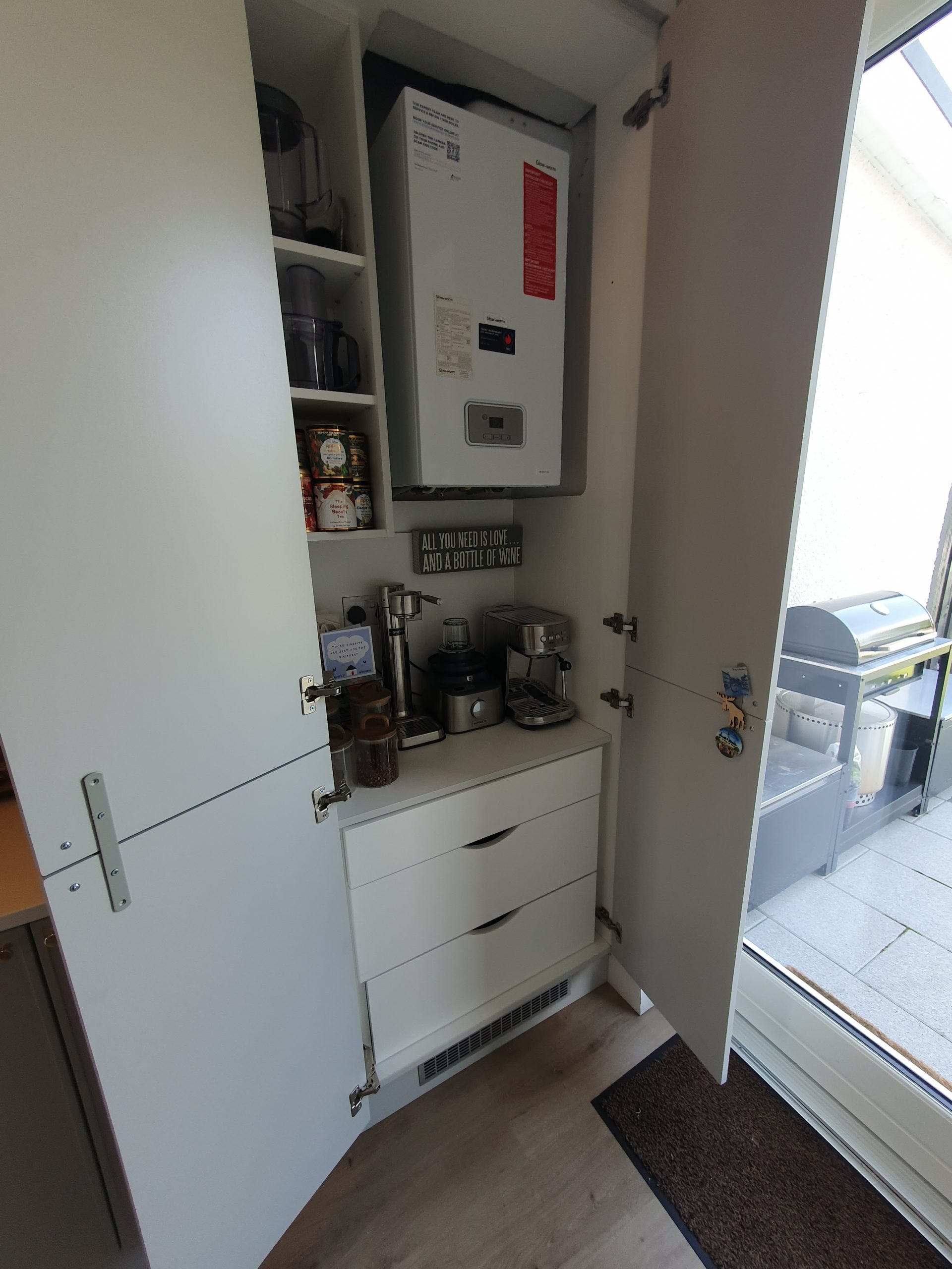 MFK installed a coffee dock station as well as tall storage, base unit and floating shelves.