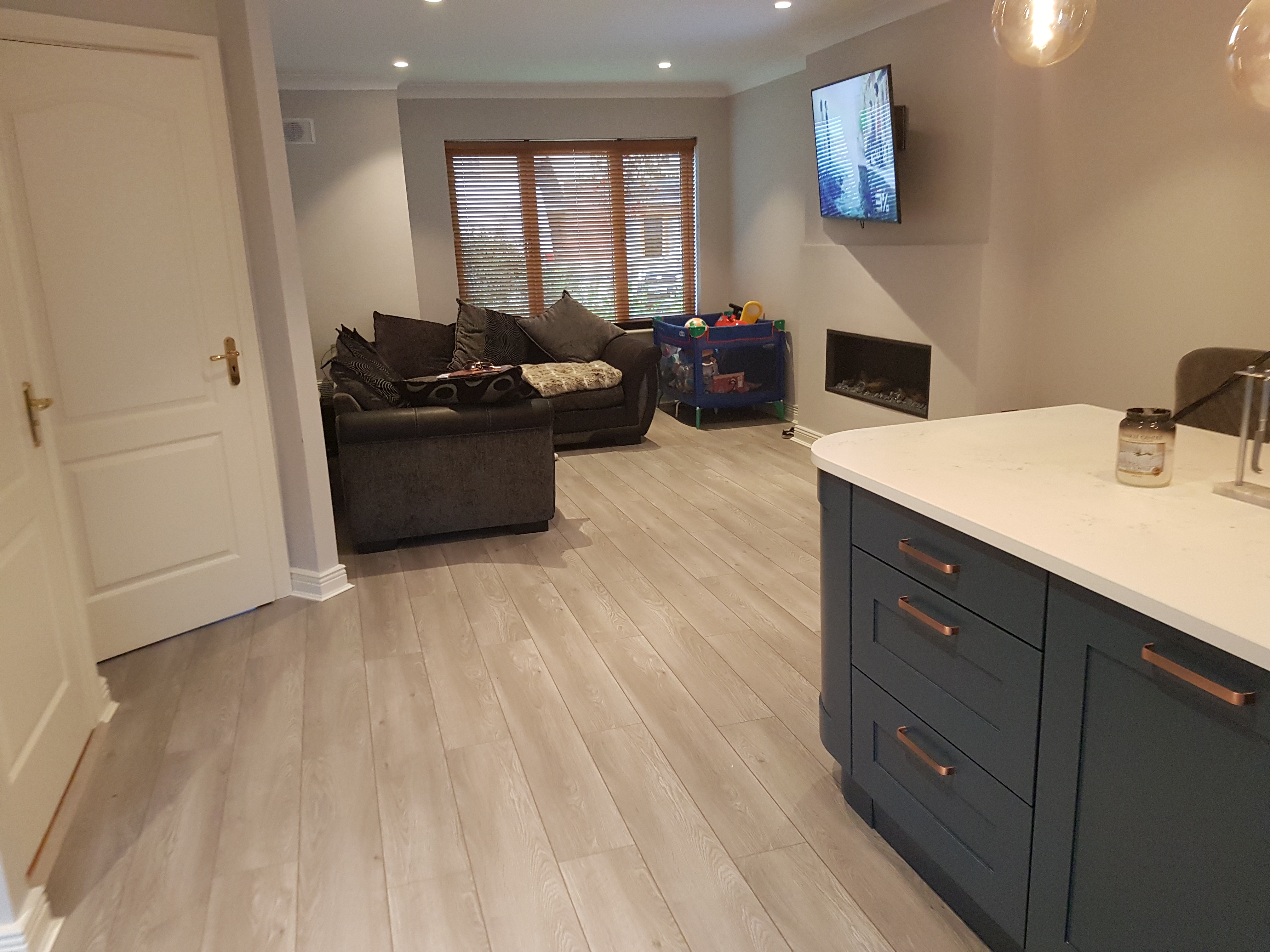 The room was divided by a stud wall so we took the wall down to make the downstairs open plan and let light in no matter what time of the day it is.